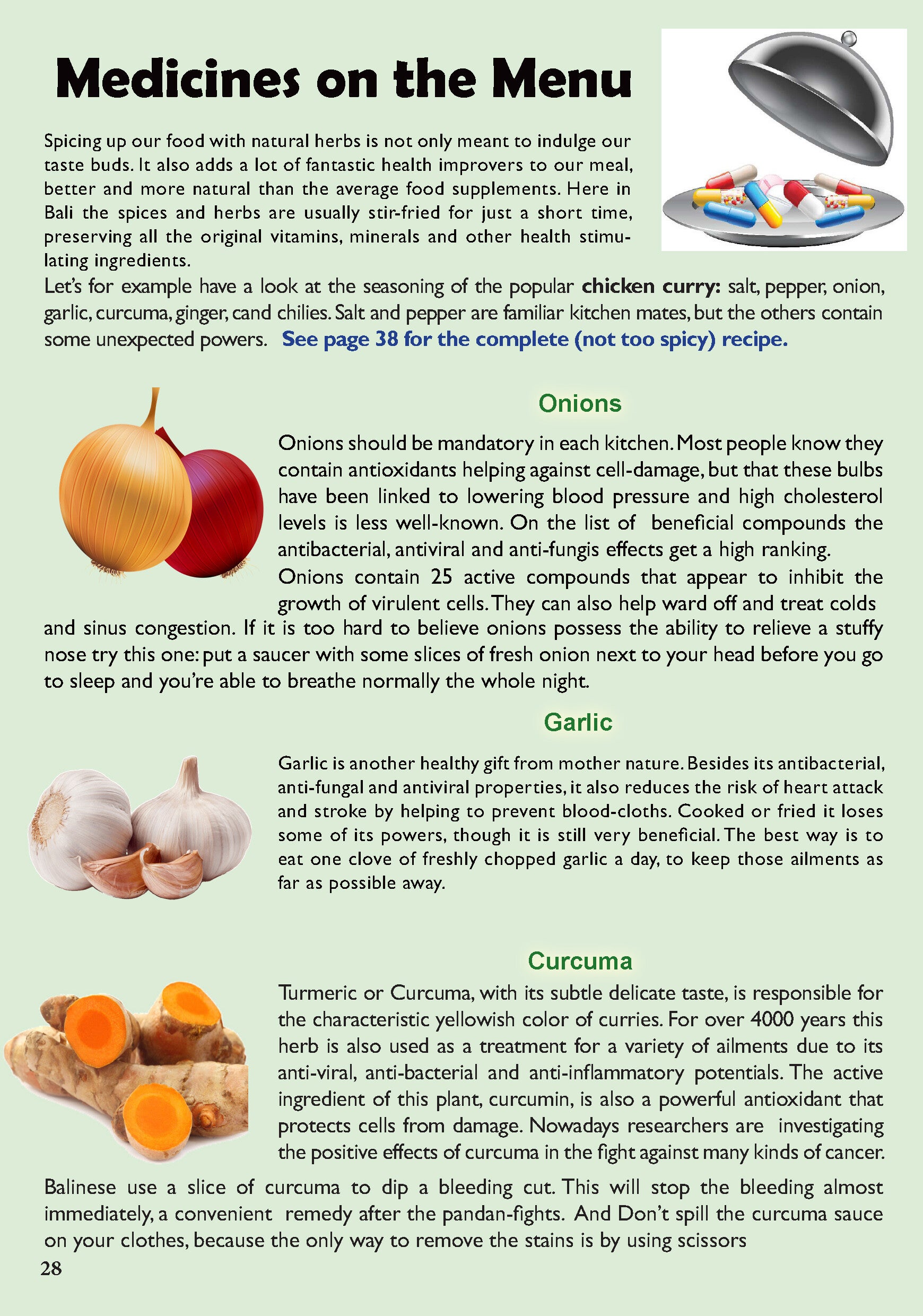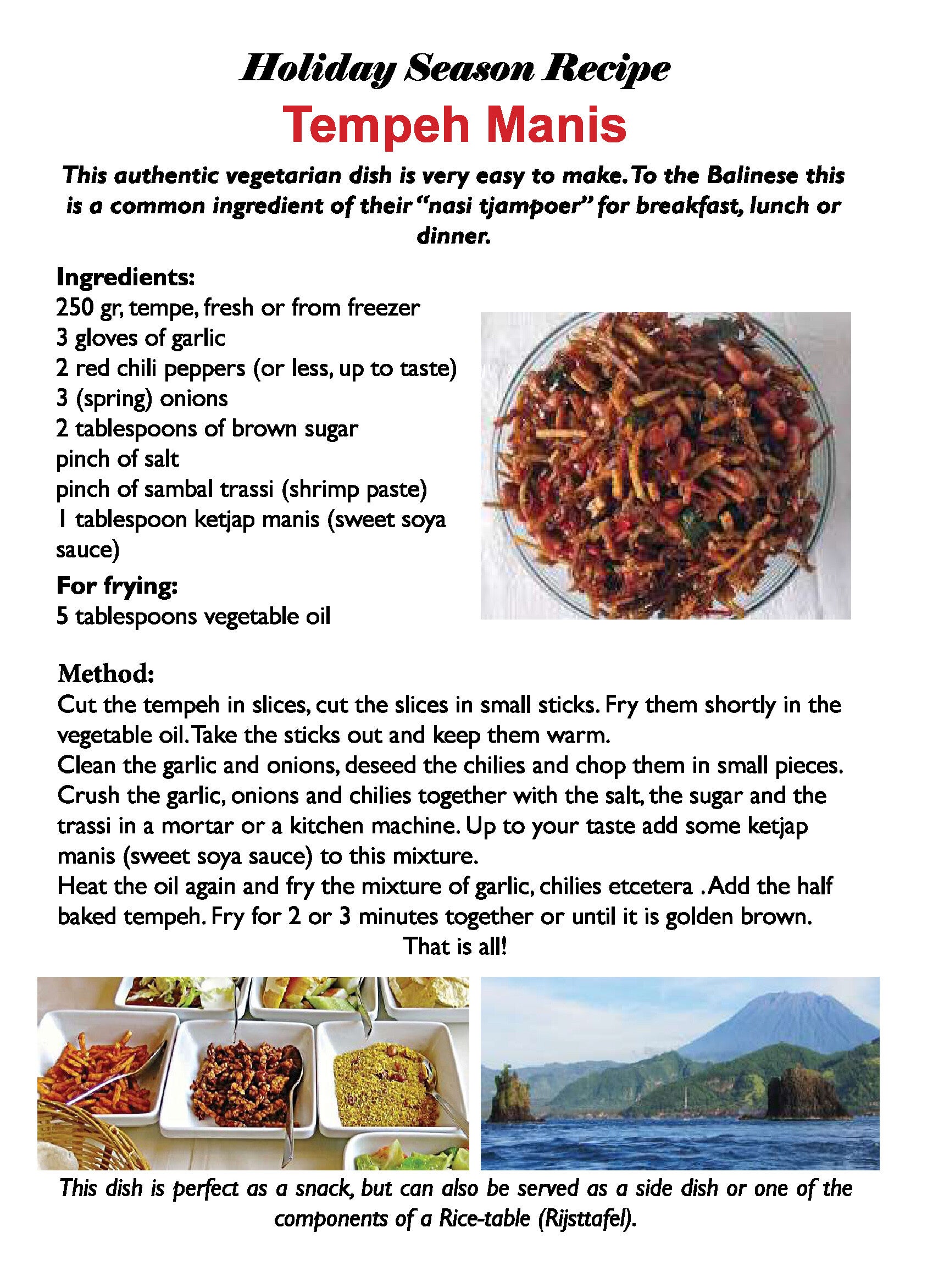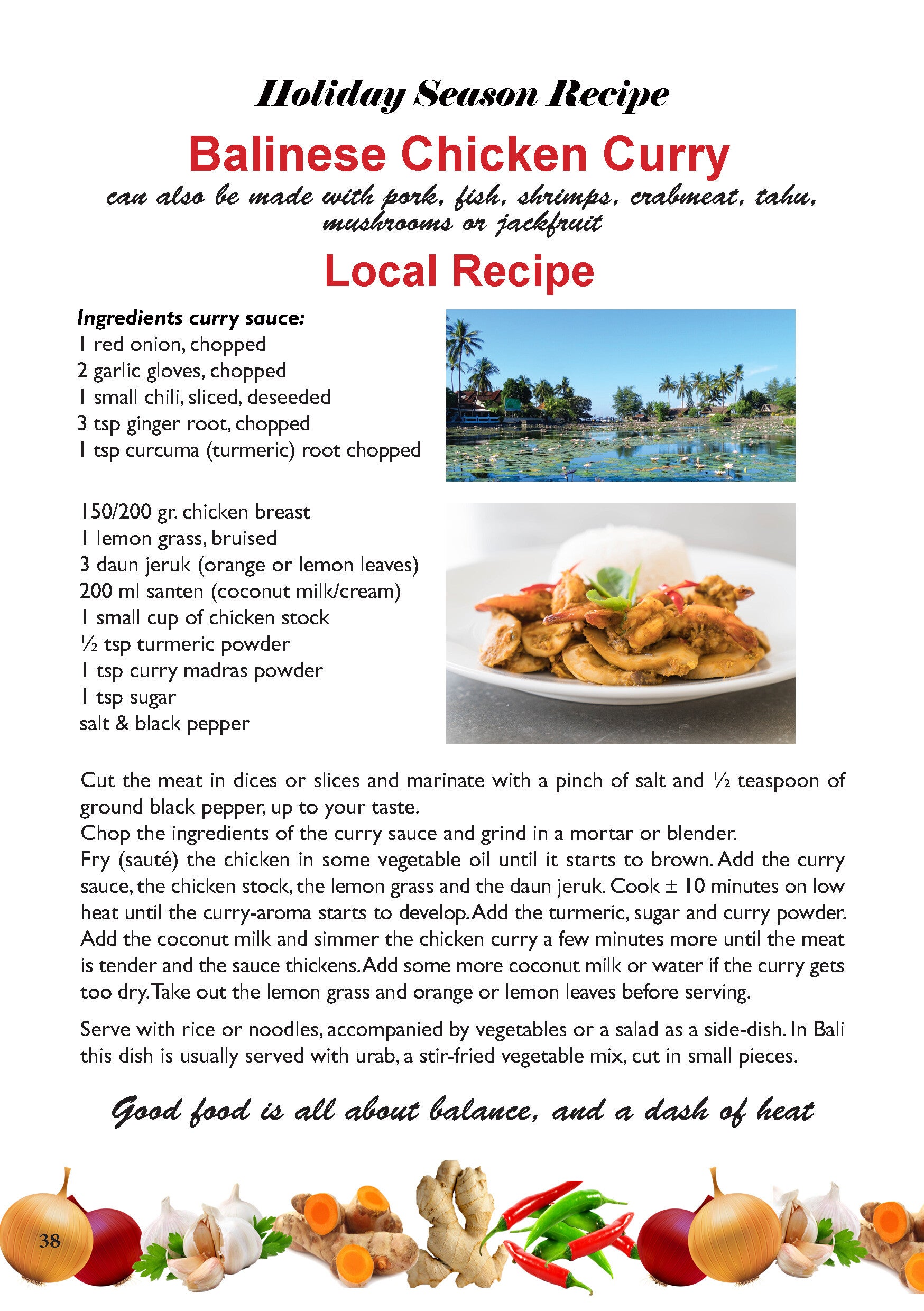 - easy-to-make recipe, local recipe (p.38)