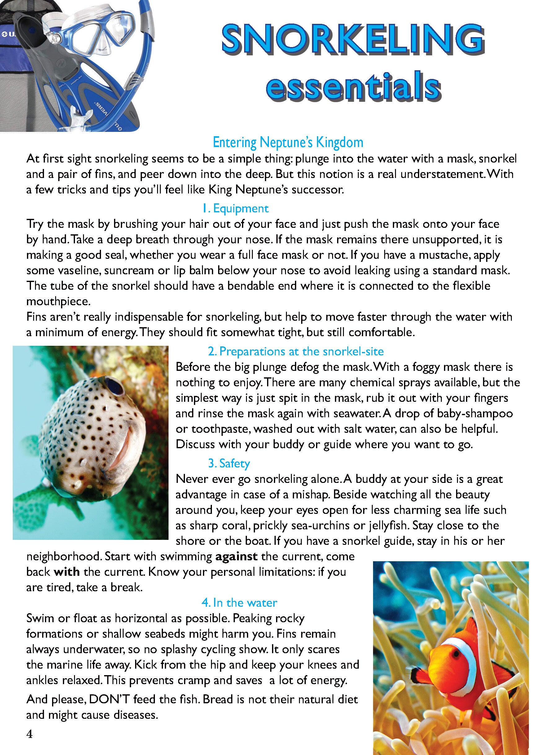 - diving, snorkeling (p. 6, 8)