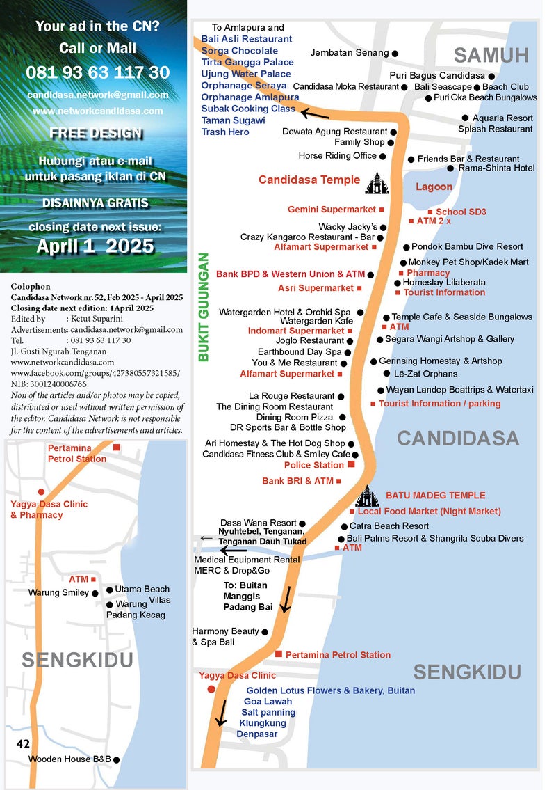 Candidasa is also a perfect basecamp to discover most of Bali without getting stuck in the traffic around the touristic Kuta/Sanur/Denpasar area. Click here to see the map of East Bali, with a table of distances